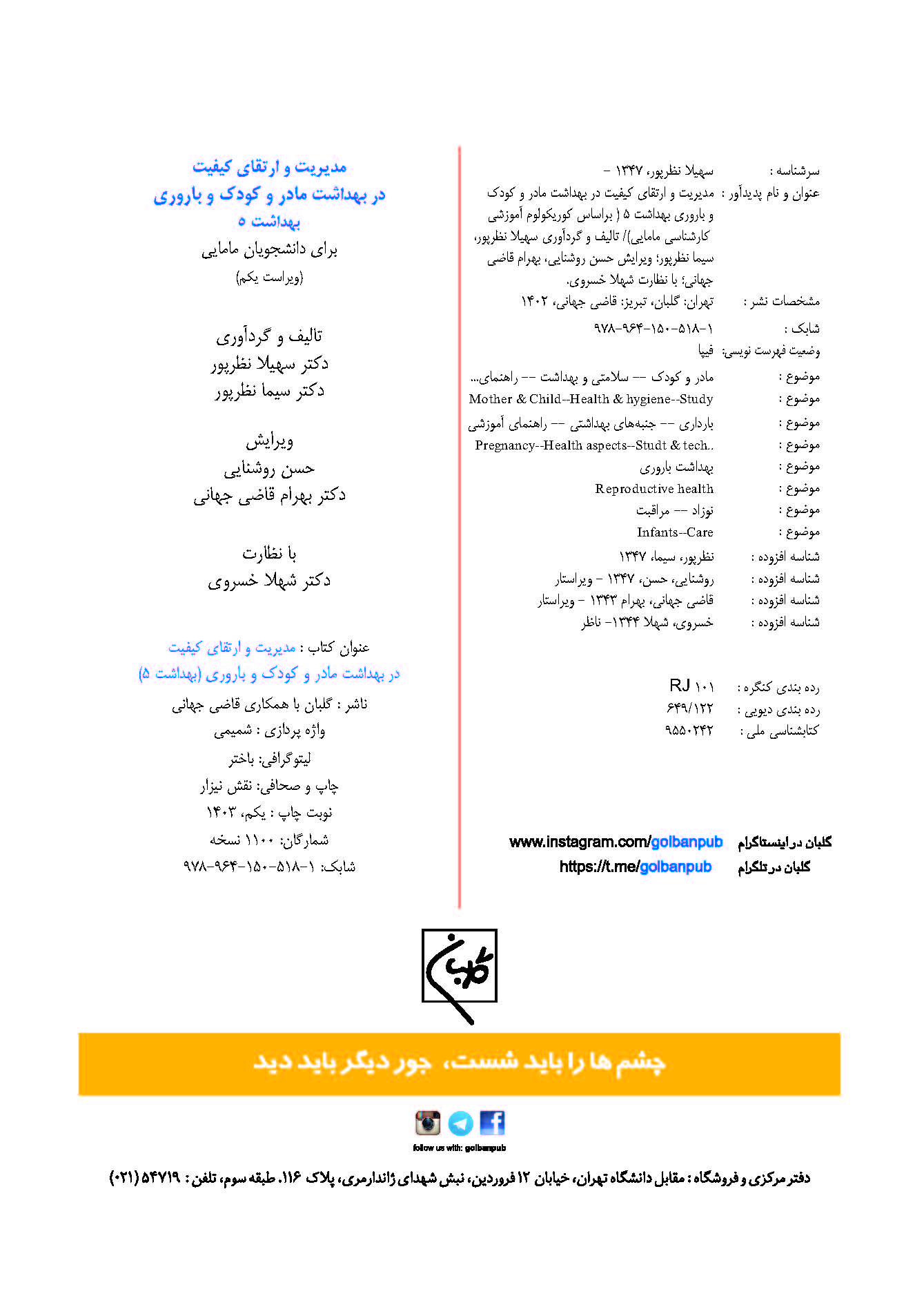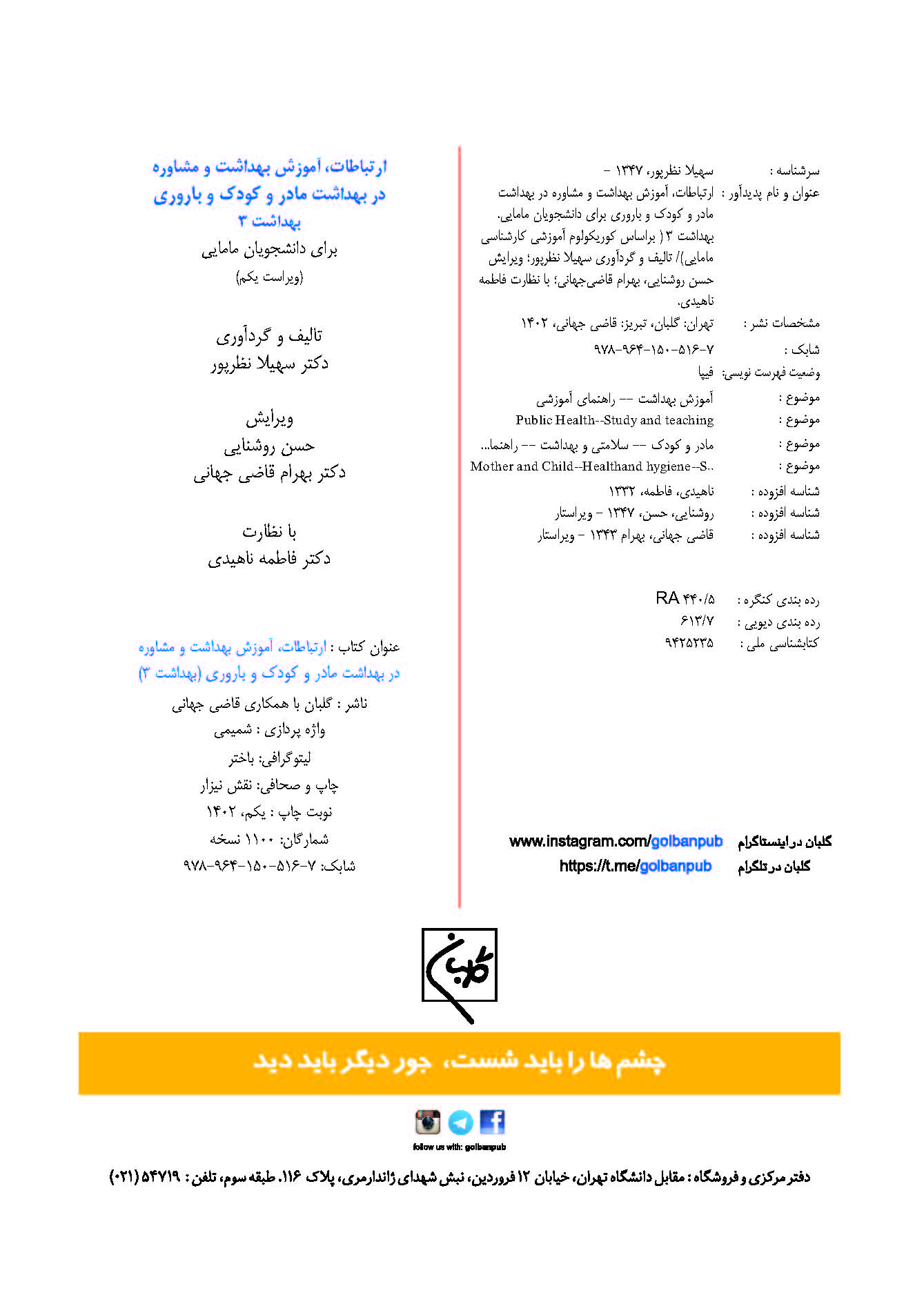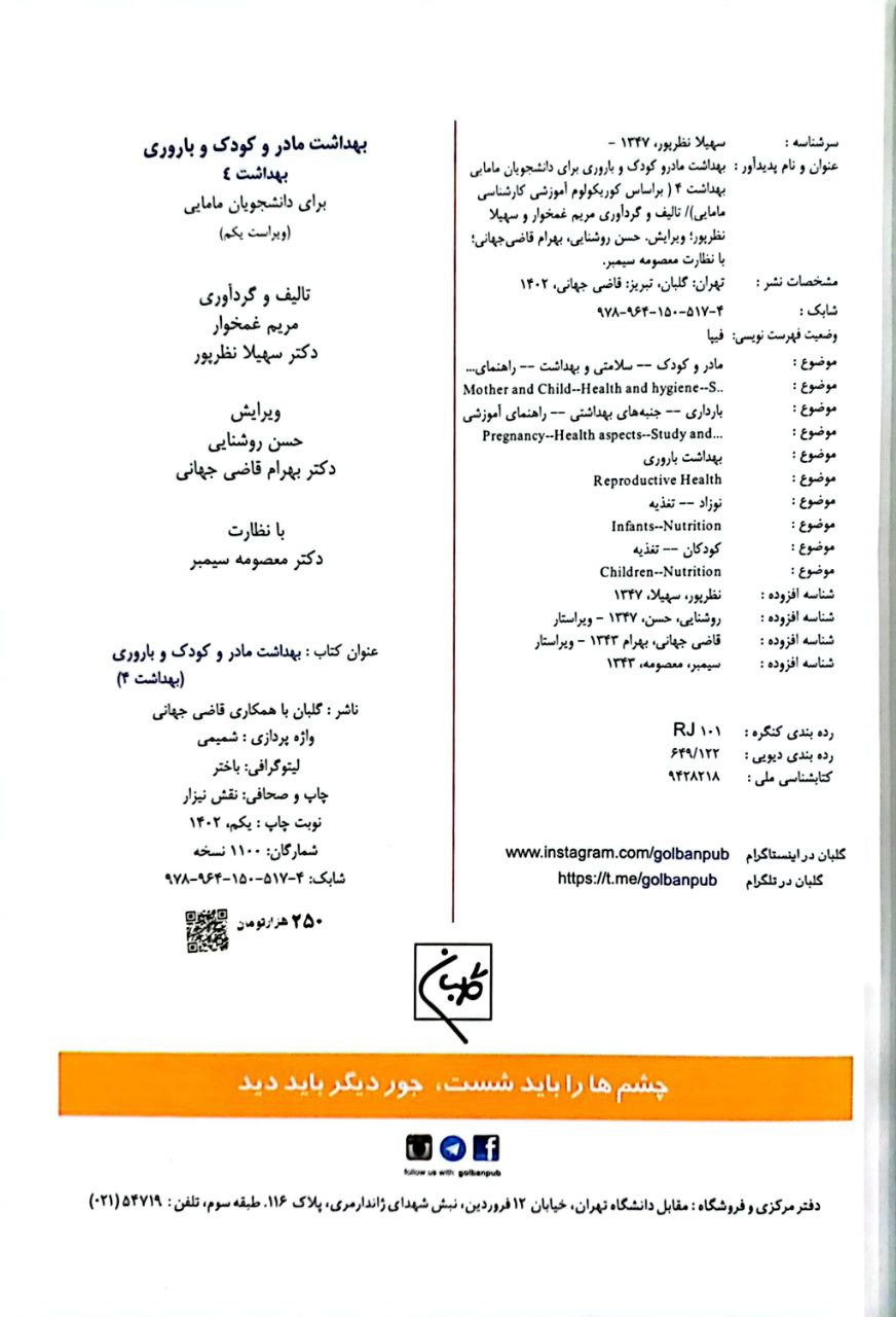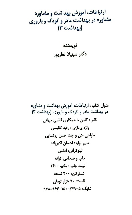 12 ارتباطات، آموزش و مشاوره بهداشت مادر و کودک و باروری (بهداشت 3) سهیلا نظرپور گلبان نشر 1400