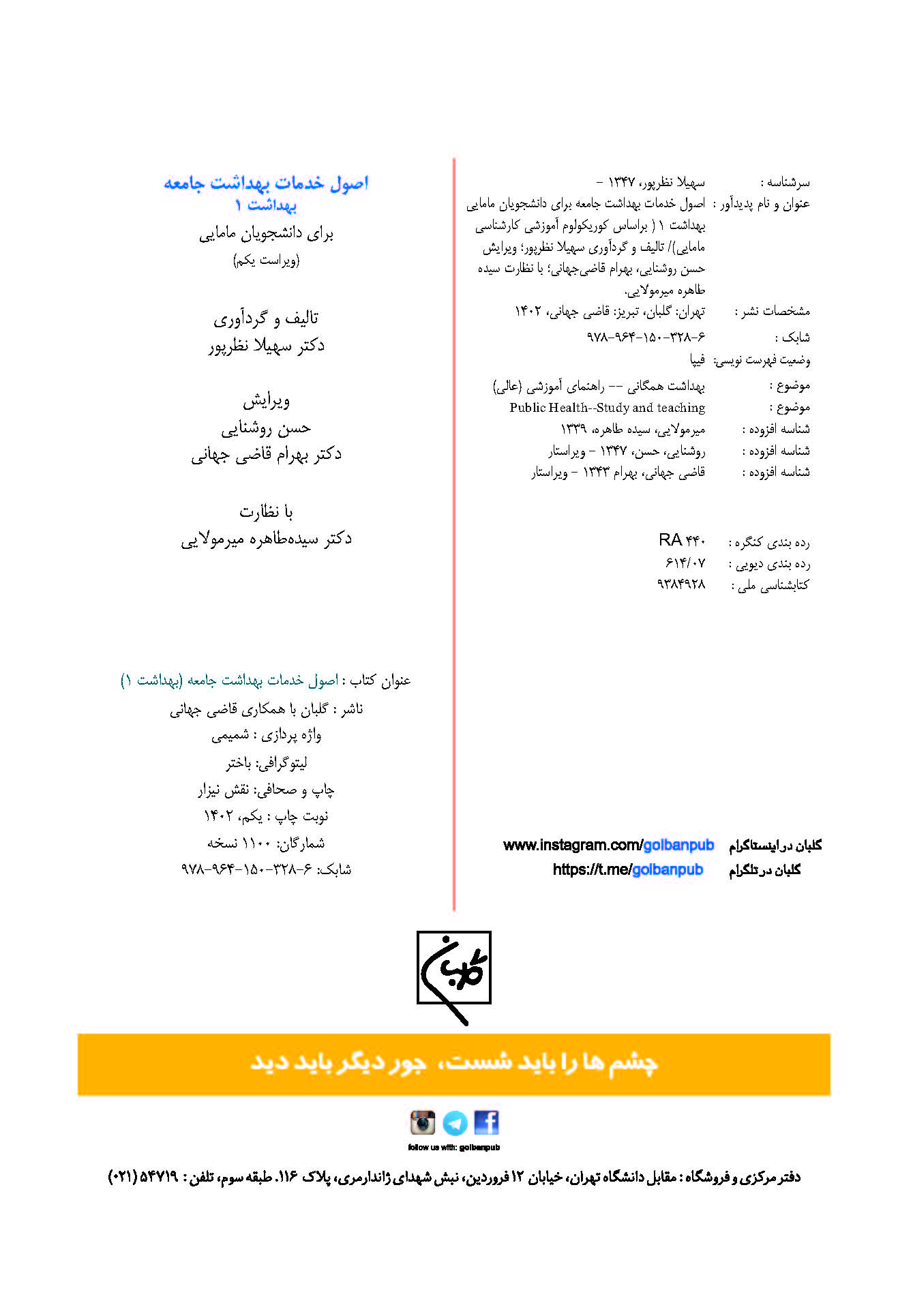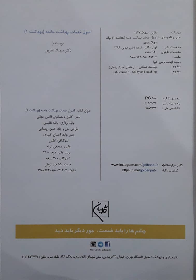 17 اصول خدمات بهداشت جامعه (بهداشت 1) «چاپ دوم با اصلاحات» سهیلا نظرپور گلبان نشر 1400