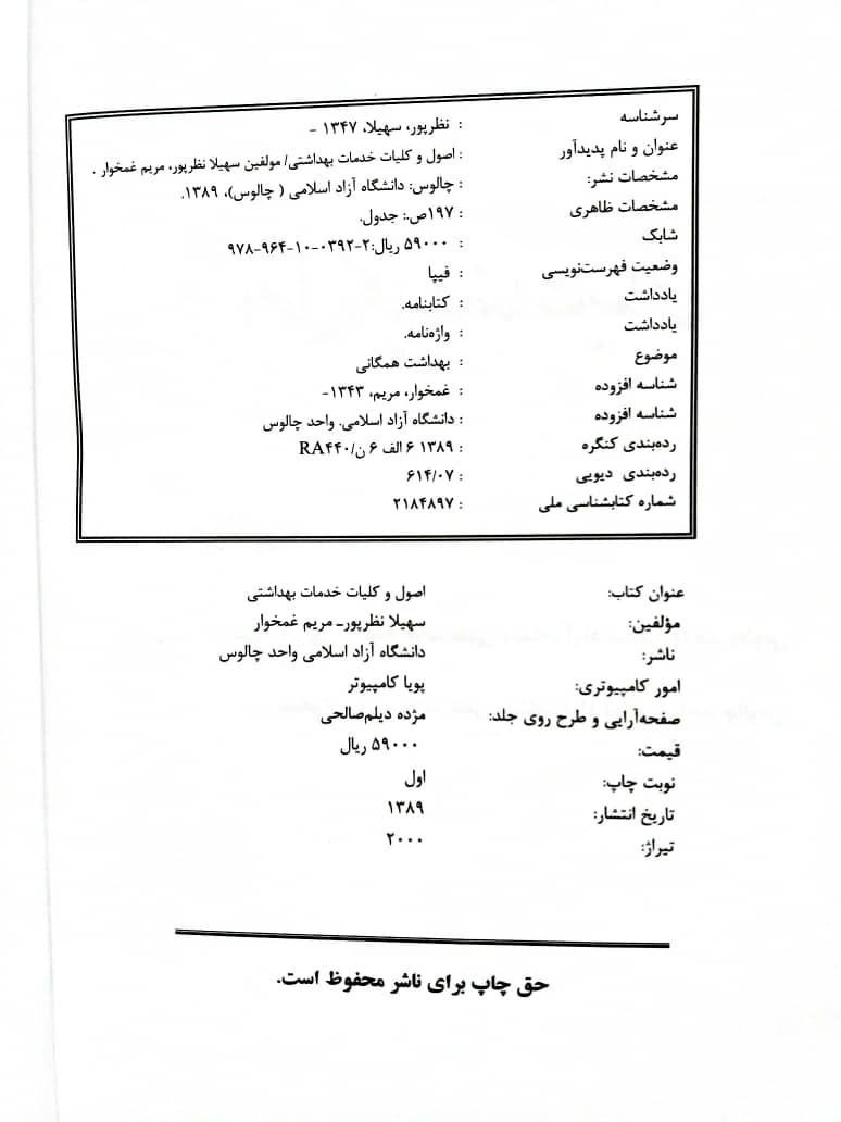 21 اصول و کلیات خدمات بهداشتی سهیلا نظرپور، مریم غمخوار دانشگاه آزاد اسلامي واحد چالوس 1389