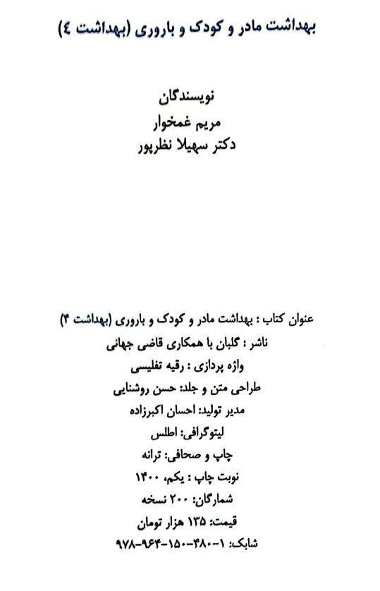 11 بهداشت مادر و کودک و باروری (بهداشت 4) مریم غمخوار، سهیلا نظرپور گلبان نشر 1400