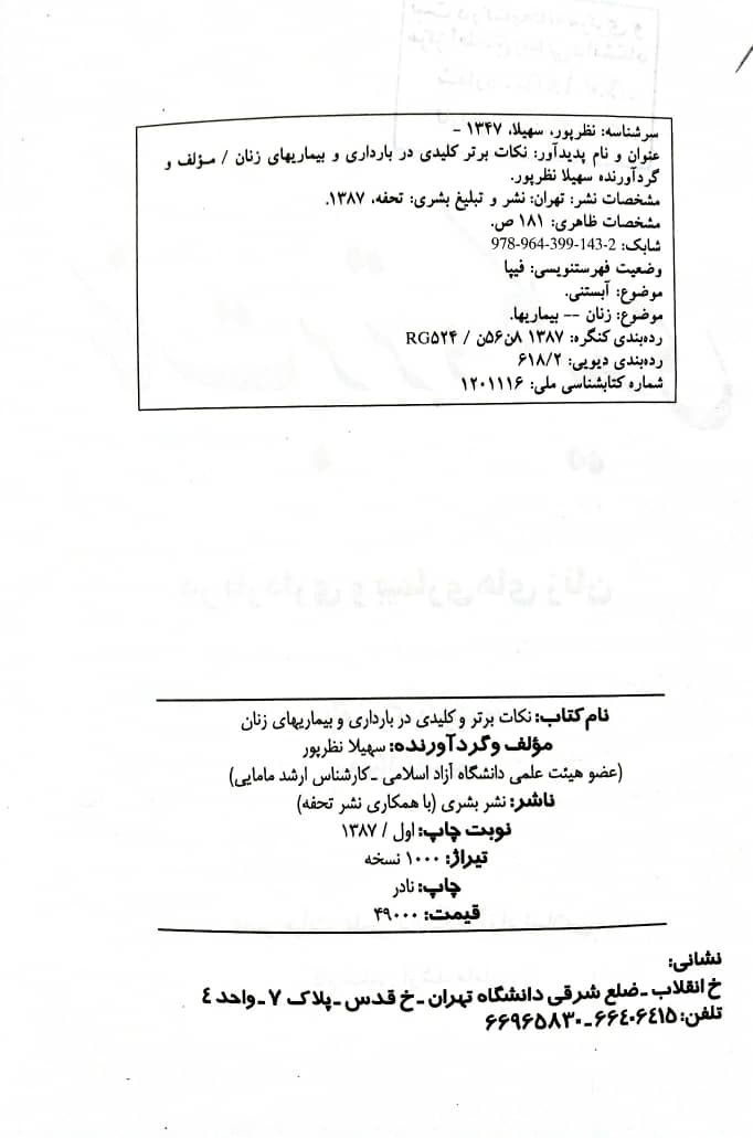 23 نکات برتر و کلیدی در بارداری و بیماری های زنان سهیلا نظرپور بشری 1387