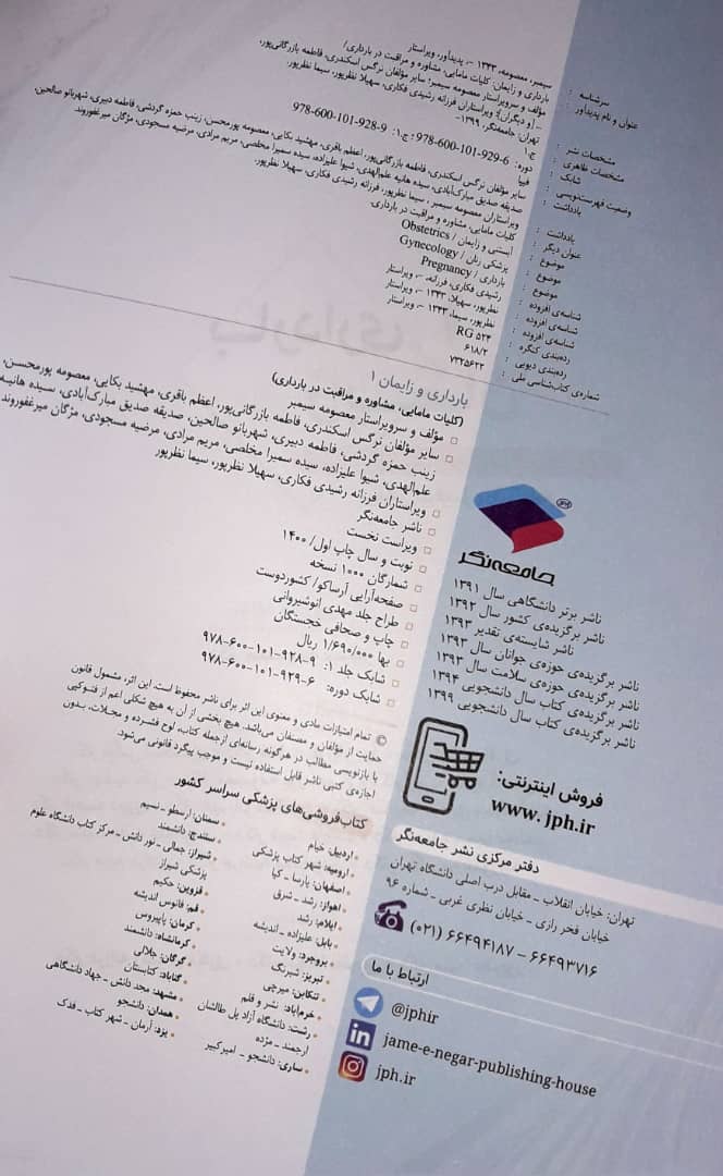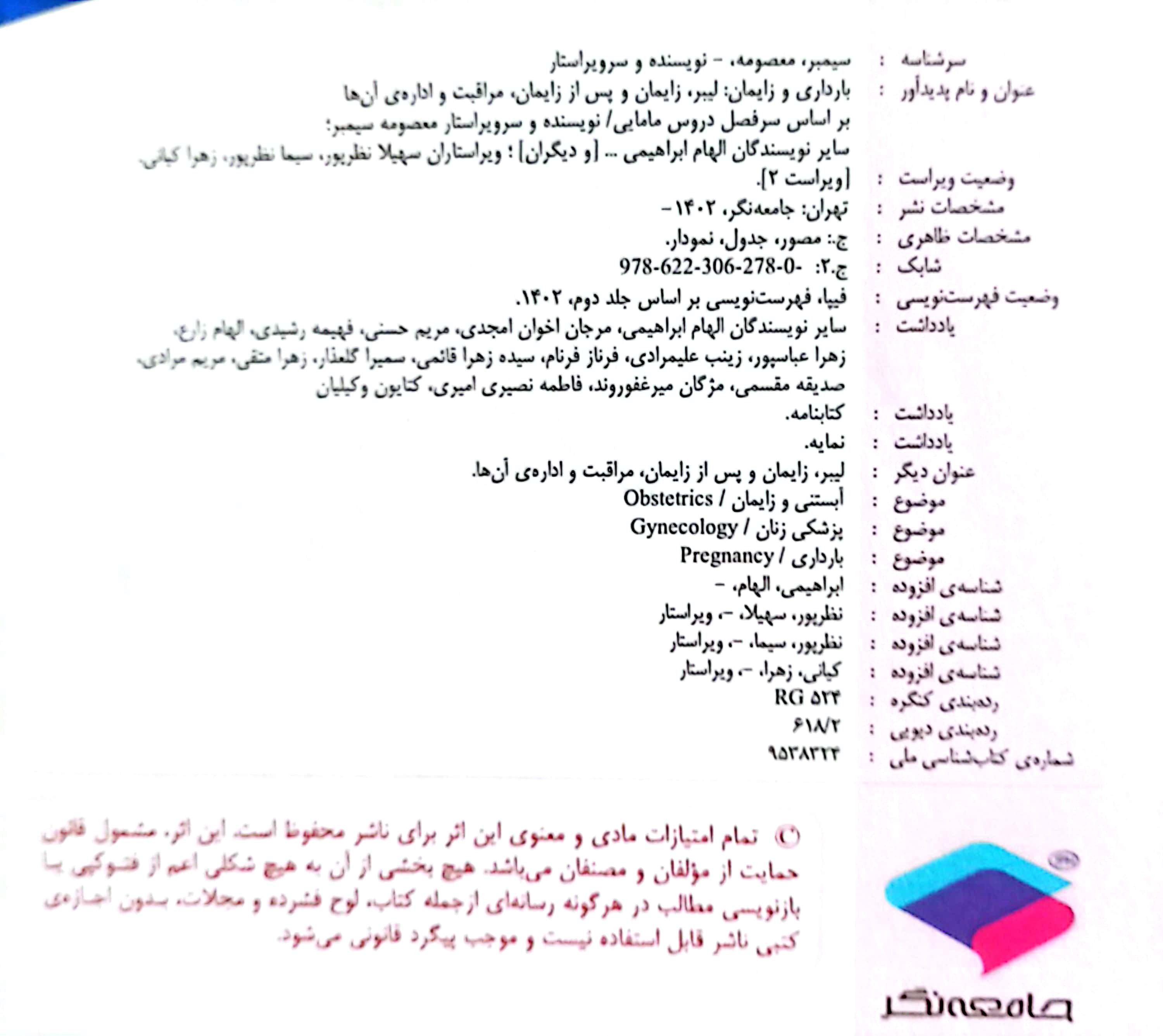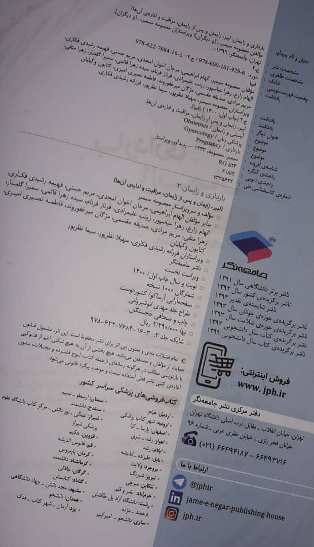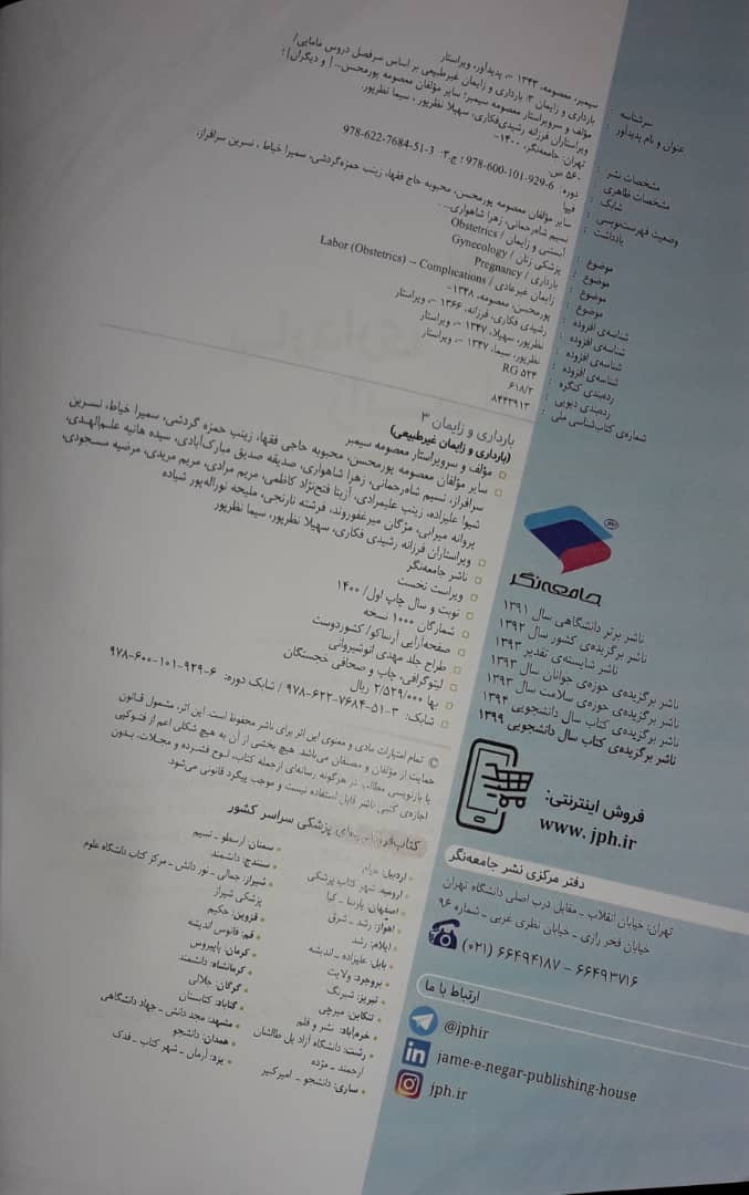 2 ویراستاری کتاب بارداري و زايمان 3- بارداری و زایمان غیرطبیعی- ویراست دوم (اثر برگزیده چهلمین جایزه کتاب سال) گروه نویسندگان جامعه نگر 1403
