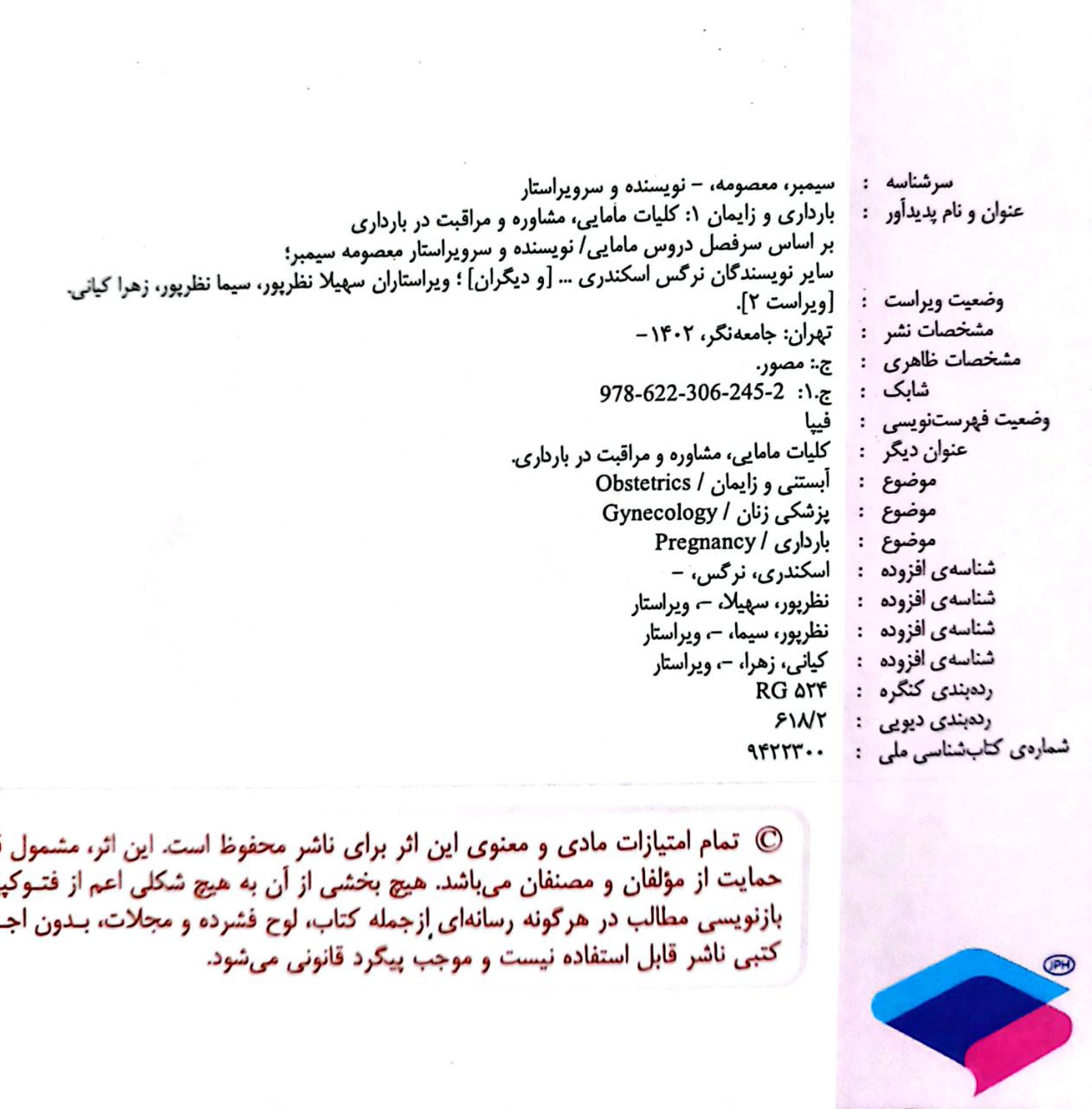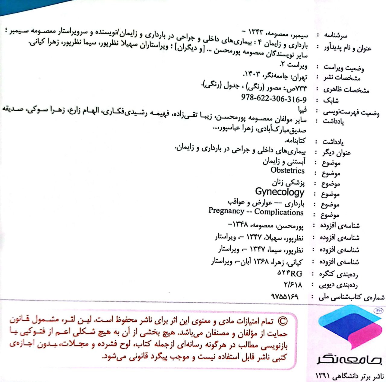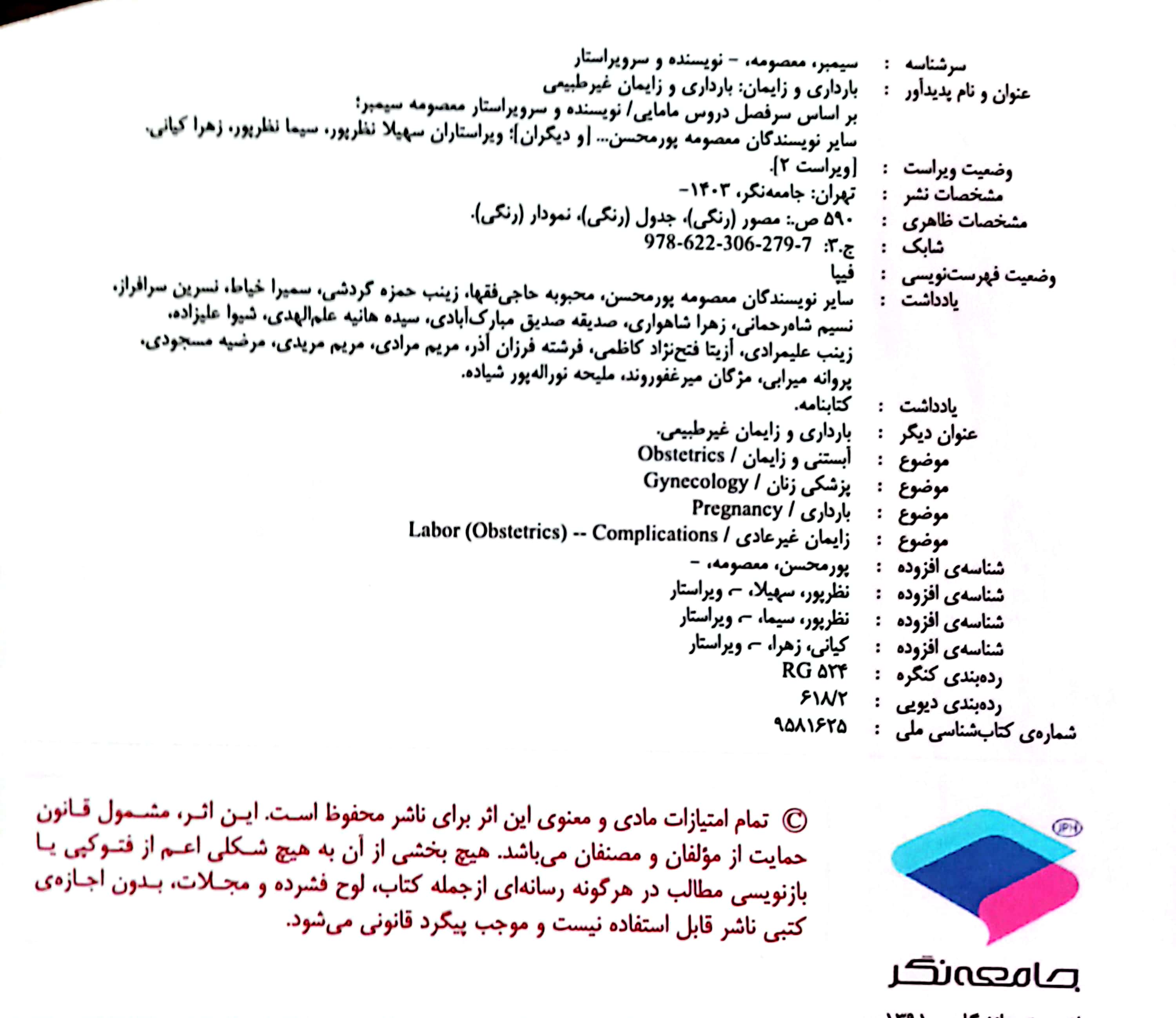 2 ویراستاری کتاب بارداري و زايمان 3- بارداری و زایمان غیرطبیعی- ویراست دوم (اثر برگزیده چهلمین جایزه کتاب سال) گروه نویسندگان جامعه نگر 1403