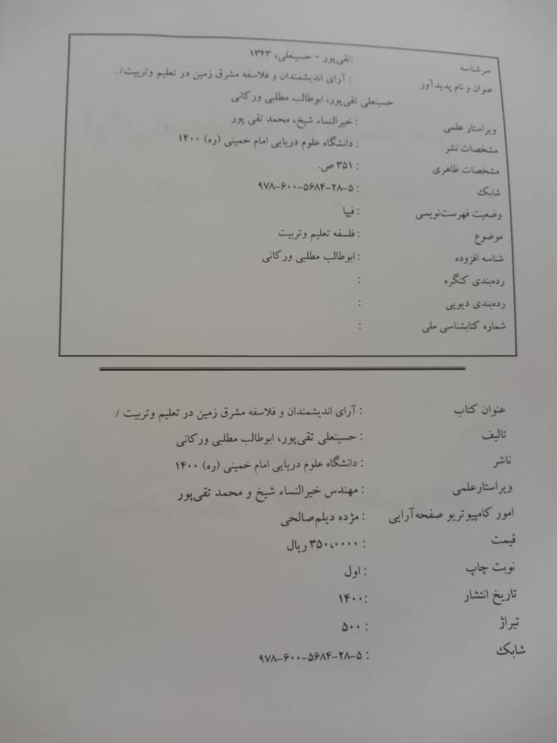 # عنوان مقاله نام نویسندگان نام کنفرانس مکان زمان نحوه ارائه 1 تاثیر ارزشهای سازمانی برتوسعه پایدار (مورد مطالعه:کارکنان آموزش دانشگاه آزاد اسلامی غرب استان مازندران) حسینعلی تقی پور هشتمین کنفرانس ملی توسعه پایدار در علوم تربیتی و روانشناسی،مطالعات اجتماعی و فرهنگی تهران ۱۳۹۹ سخنرانی 2 تاثیر هویت سازمانی بر کامیابی در کار (مورد مطالعه: معلمان مقطع ابتدایی شهرستان تنکابن) حسینعلی تقی پوروحاتمه رجب نیا پنجمین همایش بین المللی مدیریت،روانشناسی و علوم انسانی با رویکرد توسعه پایدار تهران 1398 سخنرانی 3 تاثیرمسئولیتپذیری اجتماعی برهویت سازمانی (مورد مطالعه:کارکنان آموزشی دانشگاه آزاد اسلامی غرب استان مازندران) حسینعلی تقی پور نجمین همایش بین المللی مدیریت،روانشناسی و علوم انسانی با رویکرد توسعه پایدار تهران 1398 سخنرانی 4 رابطه آموزش ضمن خدمت بر توانمند سازی کارکنان آموزش وپرورش غرب استان مازندران حسینعلی تقی پور، آزاده میرچی - فاطمه سیاه پشت خاچکی سومین کنفرانس ملی رویکردهای نوین در آموزش و پژوهش بابلسر 1397 سخنرانی 5 اثربخشی باز آموزی اسنادی بر عملکرد حل مساله ریاضی دانش آموزان پسر و دختر، ناتوانی یادگیری ریاضی شهرستان نوشهر حسینعلی تقی پور،آزاده میرچی دومین کنفرانس آموزش و کاربرد ریاضیات کرمانشاه 1397 سخنرانی 6 تعیین ارتباط عمودی کتاب های ریاضی پایه های دوم الی ششم دوره ی ابتدایی بر اساس شاخص های توالی و تداوم حسینعلی تقی پور ،آزاده میرچی سومین کنفرانس ملی رویکردهای نوین در آموزش و پژوهش محمود آباد 1397 سخنرانی 7 مطالعه موردی تبیین فرسودگی تحصیلی و تعیین کنندگی در یادگیری و خودتعیین کنندگی تحصیلی دانش آموزان متوسطه اول (شهرستان نوشهر) - حسینعلی تقی پور -ملیحه نیازیان - عباس نیازیان سومین کنفرانس ملی رویکردهای نوین در آموزش و پژوهش محمود آباد 1397 سخنرانی 8 نقش سرمایه اجتماعی بر تحول سازمان های کارفرین حسینعلی تقی پور - معصومه علی نژاد اولین همایش ملی کارآفرینی چالوس 1397 سخنرانی 9 شناسایی رابطه بین سرمایه ساختاری و سرمایه رابطه ای با کارآفرین سازمانی (مطالعه مورد درکارکنان منابع طبیعی استان مازندران) حسینعلی تقی پور اولین همایش ملی کارآفرینی دانشگاه ازاد اسلامی چالوس 1397 سخنرانی 10 رابطه بین تعادل کار و زندگی با سلامت کارآفرینان حسینعلی تقی پور - شقایق جوادی پور اولین همایش ملی کارآفرینی دانشگاه ازاد اسلامی چالوس 1397 سخنرانی 11 تحلیل محتوای کتاب ریاضی پایه ی ششم ابتدایی با تاکید بر روش حل مساله حسینعلی تقی پور،پروانه صداقت - دومین کنگره بین المللی علوم انسانی، مطالعات فرهنگی تهران 1396 پوستر 12 تحلیل محتوای کتاب ریاضی پایه ی ششم ابتدایی با تاکید بر روش حل مساله - حسینعلی تقی پور،پروانه صداقت پنجمین همایش علمی پژوهشی علوم تربیتی وروانشناسی، آسیب های اجتماعی و فرهنگی ایران تهران 1396 سخنرانی 13 حلیل محتوای کتاب فارسی پایه ششم ابتدایی از نظر بر خورداری ازمولفه های هویت ملی حسینعلی تقی پور ،مریم خزایی پول - دومین کنگره بین المللی علوم انسانی، مطالعات فرهنگی تهران 1396 پوستر 14 بررسی تاثیر روش تدریس کاوشگری در درس علوم تجربی برانگیزش تحصیلی دانش آموزان دختر ششم ابتدایی نوشهر حسینعلی تقی پور ،آمنه مهدی زاده - دومین کنفرانس ملی رویکردهای نوین در آموزش و پژوهش محمود آباد 1396 پوستر 15 نظریه های اقتصادی و تاثیر آن بر اقتصاد نظام آموزشی حسینعلی تقی پورآزاده میرچی - دومین کنفرانس ملی رویکردهای نوین در آموزش و پژوهش محمود آباد 1396 پوستر 16 مطالعه موردی ارتباط عمودی کتاب ریاضی دوره ابتدایی بر اساس شاخصهای توالی و تداوم حسینعلی تقی پورملیحه نیازیان - ومین کنفرانس ملی رویکردهای نوین در آموزش و پژوهش محمود آباد 1396 پوستر 17 ارتباط رفتارهای یادگیری با موفقیت تحصیلی دانش آموزان دوره اول متوسطه شهرستان رامسر در سال 95-1394 حسینعلی تقی پور - زهرا جوربنیان سومین کنفرانس جهانی روانشناسی و علوم تربیتی، حقوق و