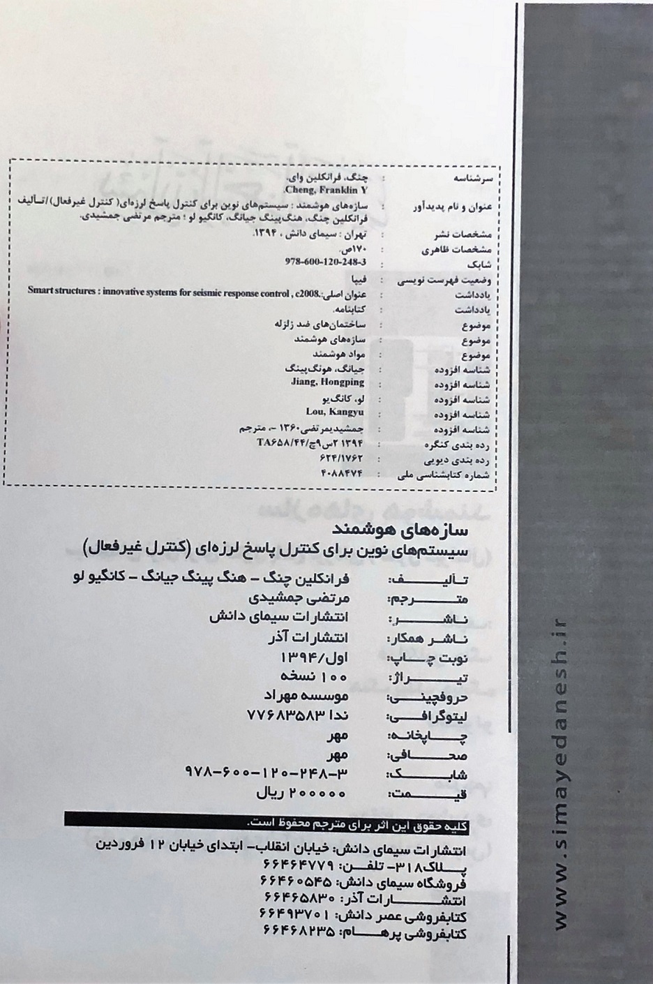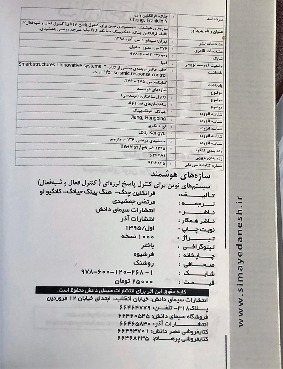 # عنوان 1 کنترل لرزه ای سازه ها 2 طراحی شکل پذیر سازه ها 3 مهندسی آتش -